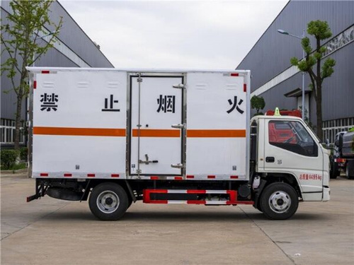 危险品运输车是一种货厢顶部不封闭,排气管前置并装有防火花装置,运送石油化工品、炸药、鞭炮等危险品的专用车辆。