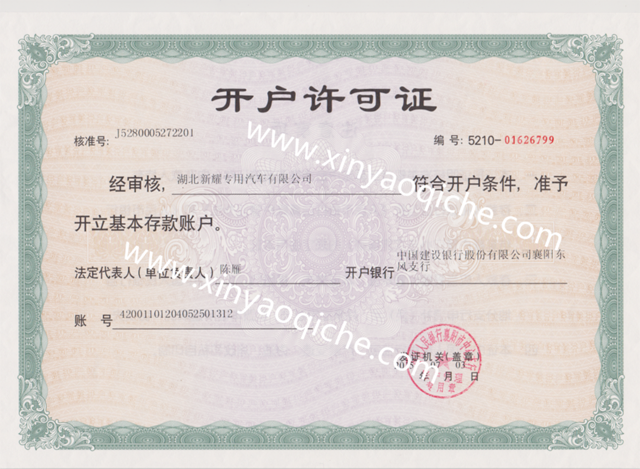 湖北新耀专用汽车有限公司对公账户及开票资料